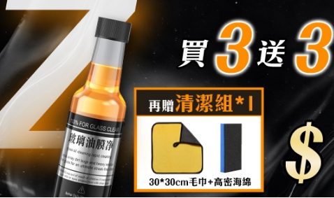 25分鐘前視線不清晰/行車不安全/一罐輕鬆去油膜 油膜玻璃淨 /水珠自然滑下不殘留/倒入玻璃水箱/立刻見效 - 【個人組】買3送3 / 贈清潔品*1NT$799