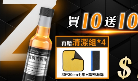 25分鐘前視線不清晰/行車不安全/一罐輕鬆去油膜 油膜玻璃淨 /水珠自然滑下不殘留/倒入玻璃水箱/立刻見效 - 【一罐79元】買10送10 / 贈清潔品*4NT$1580