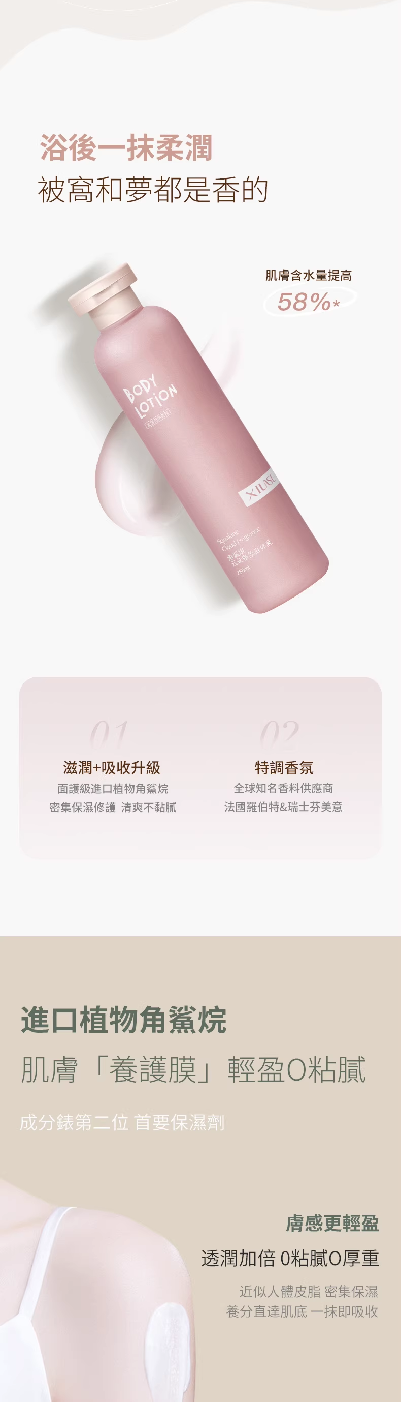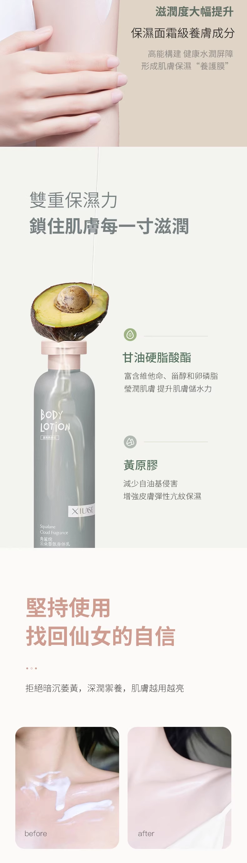12分鐘前【男朋友抱著我說好香呀】植物香氛身體乳,出汗都是香香的~比香水更迷人,持久留香提亮膚色,保濕滋潤清爽不油膩,高級香味好聞不刺鼻,一天擦一次 走到哪都是香香的~ 免 - 【活動優惠】 三入組 -NT$958(均價低於319)