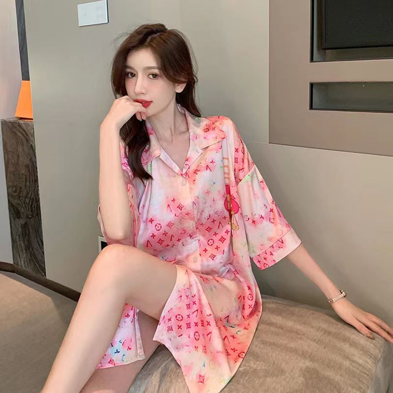 5分鐘前春夏蕾絲睡裙 冰絲短袖薄款寬鬆 性感襯衫睡衣裙 - 超值三入組 499/件三款任選 NT$1497